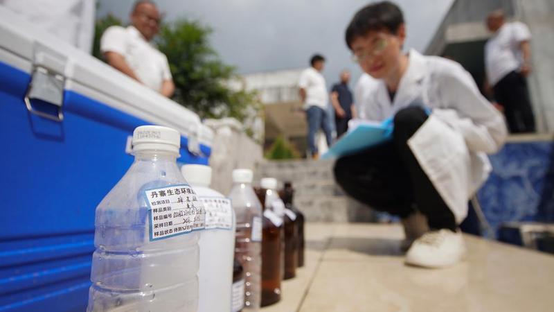 6月30日,工作人员在展示《现代桥梁建设》特种邮票。新华社记者 陶亮 摄