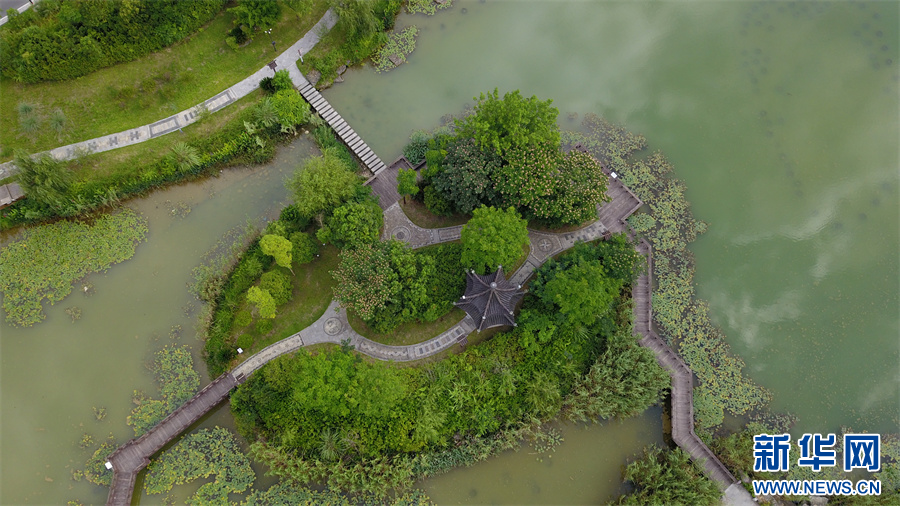 梵净山下江口县的一处湿地公园(无人机照片,7月5日摄)。