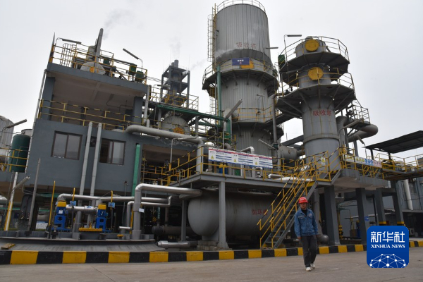 工作人员在贵州胜威福全化工有限公司内巡查。该公司建成“钛—磷—硫—铁”全资源循环利用新材料项目,助力企业节能改造。新华社记者 李凡 摄