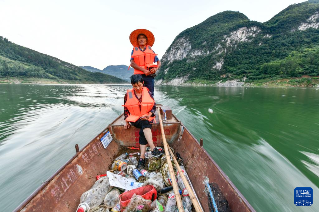 如今,年近六旬的夫妻俩已不再靠摆渡贴补家用,但一年四季依然坚持驾驶自家的小船,往返于家门前15公里的两个码头之间,巡视清理江面。他们希望自己的行动,能够带动更多村民参与进来,共同保护好乌江的生态环境。