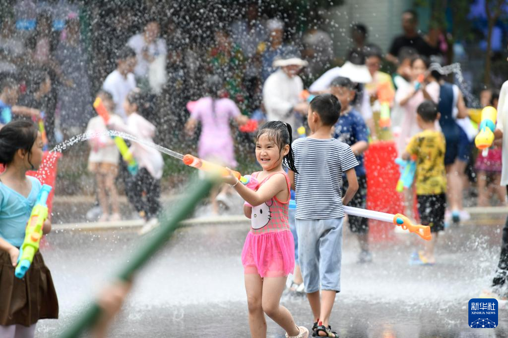7月23日,人们在贵州省黔东南苗族侗族自治州施秉县泼水狂欢。新华社发(王超摄)