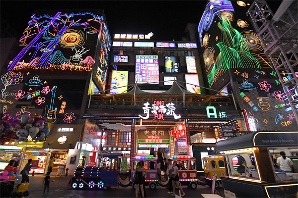 邓一:青云市集重新打造之后,原有的市场它不是抹灭了,实际上在保留、加强了原有的烟火气的前提下,我们又提升了像排烟、视觉、灯光等,最重要的是我们把以前大概是100多家的传统夜市,变成了今天含小吃70余家、文创70余家,还有各种场馆、酒吧20余家,总共5万平方米,210个商户的一个夜经济综合体。我认为它第一满足了就业,第二让整个城市已经延续了二十多年的一个老夜市又焕发新的生机。所以当时对这个项目的定调我们叫“老贵阳 新调调”,“三不学”,不学仿古做旧,不学少数民族,不学商场的一体化规划。你在青云市集看到更多的就是五光十色的灯光,各种文创的小手办,你在一个吃小吃的地方还可以打篮球,甚至去就是撸猫等等,我觉得这个是一个比较创新的点。