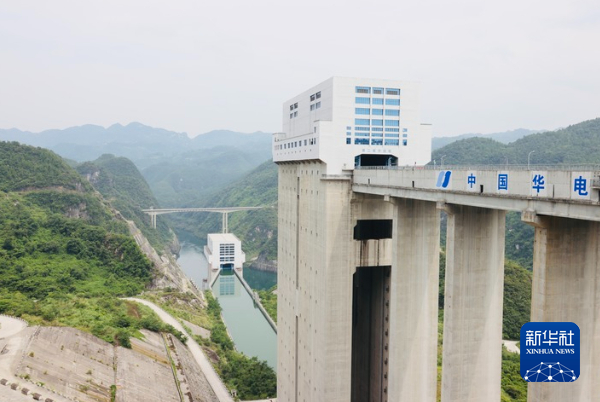 7月25日拍摄的贵州省遵义市余庆县乌江构皮滩水电站通航工程第二级升船机。新华社记者 周宣妮 摄