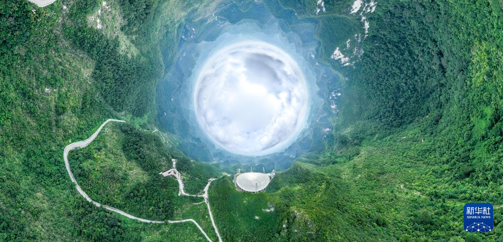 7月26日拍摄的“中国天眼”全景(维护保养期间无人机拍摄)。