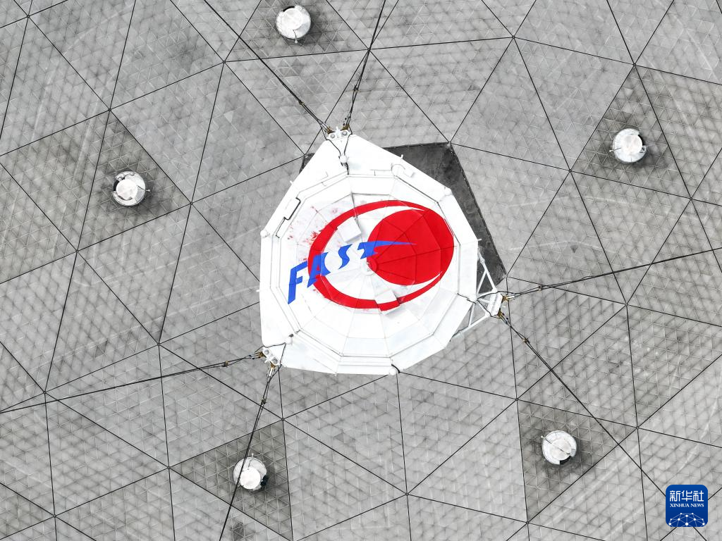 7月26日拍摄的“中国天眼”馈源舱(维护保养期间无人机拍摄)。新华社记者 欧东衢 摄