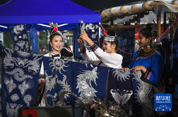 让“村超”“村BA”迅速火遍全网的不光是精彩、纯粹的球赛,还有丰富多彩的民族文化展演。其中,绚丽多彩的民族服饰成为一大亮点。在体育赛事的带动下,当地一些少数民族服饰成为备受追捧的时尚单品。