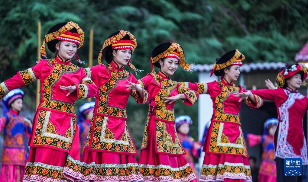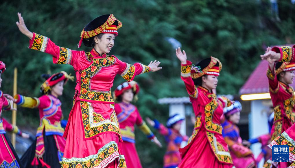 演员在威宁彝族回族苗族自治县火把节活动上表演撒麻舞(8月10日摄)。新华社记者 陶亮 摄
