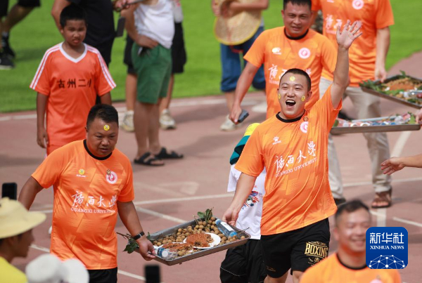 第三场是黔东南酸汤队对阵佛山市桂城竹笋队的比赛。佛山市对口帮扶黔东南州,粤黔同心,山海相连,该场比赛为东西部协作的筑梦之赛。晚上8点半左右,同属革命老区、都是美食之都的榕江卷粉队与南昌拌粉队闪亮登场,贡献当天第四场比赛,该场比赛既是红色血脉的传承,也是美食文化的碰撞。