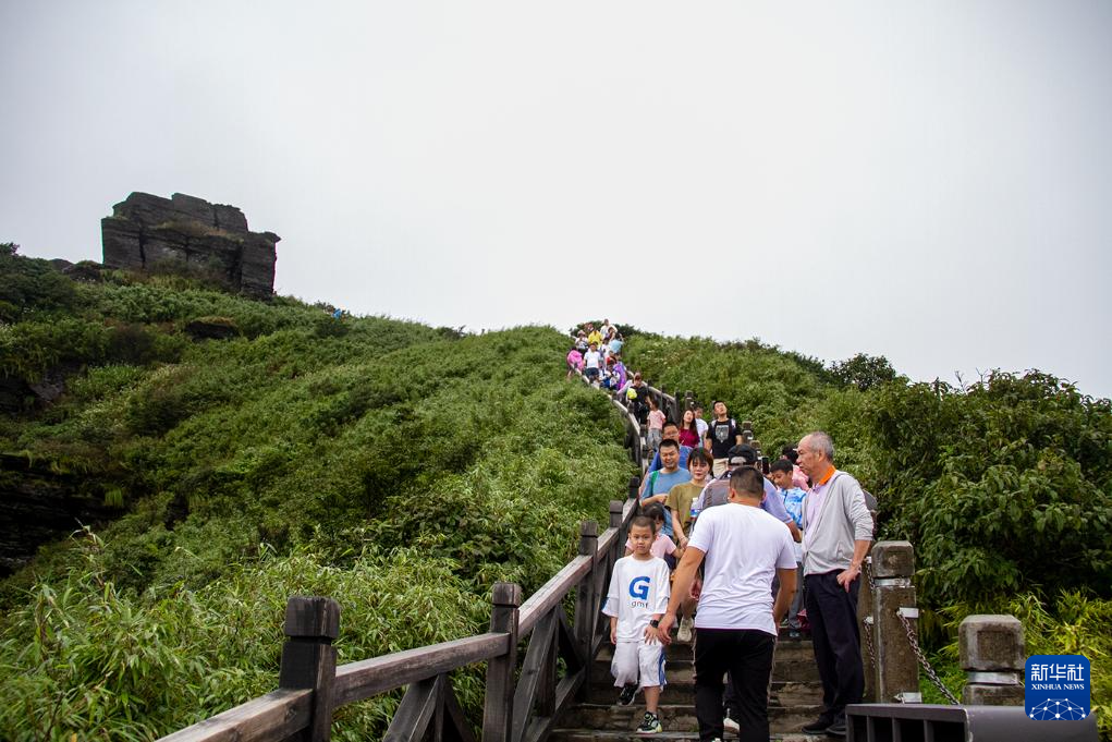 8月14日,游客在梵净山国家级自然保护区游览。新华社发(甘文武 摄)