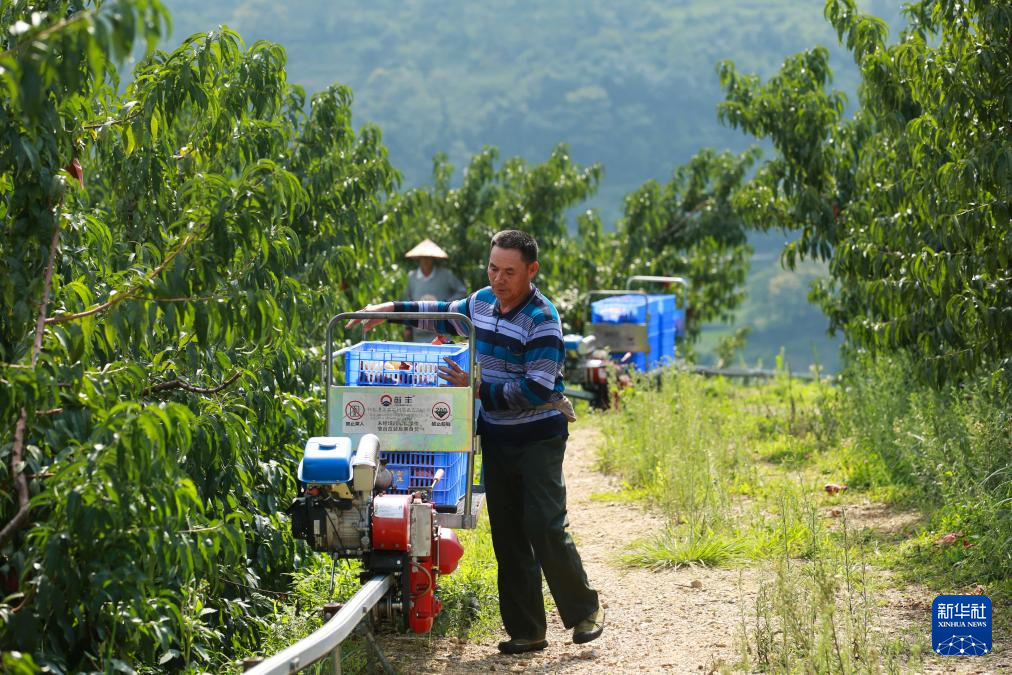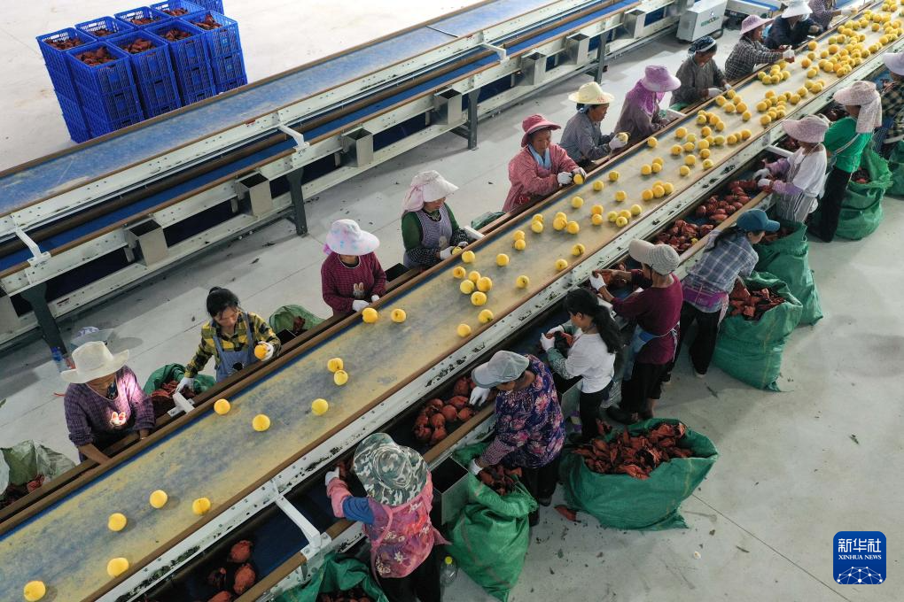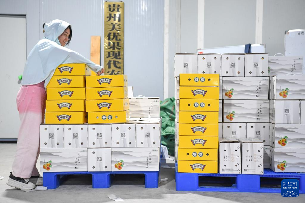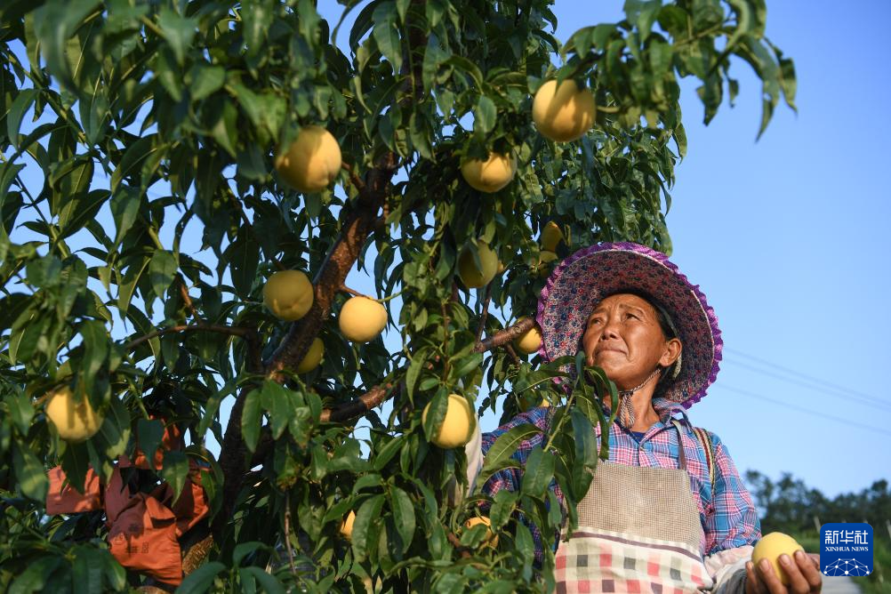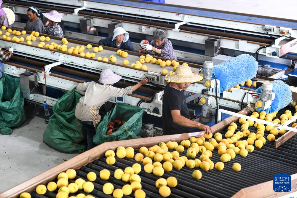 初秋时节,贵州省黔南布依族苗族自治州贵定县德新镇新铺村种植的黄桃迎来收获季节,村民忙着采摘、分拣、包装,供应市场。近年来,贵定县以“公司+合作社+农户”模式,打造黄桃种植基地,通过产业增收分红、基地务工薪酬、土地流转支付等渠道助农增收。