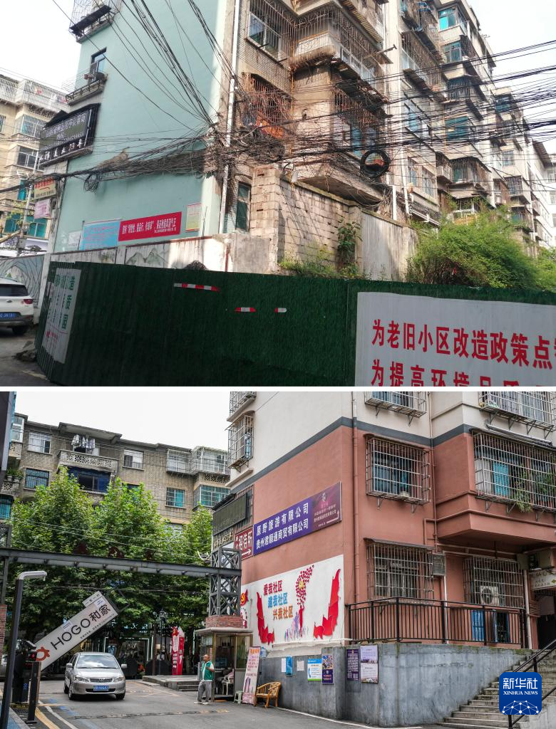 拼版照片:上图为改造前的六盘水市钟山区黄土坡街道文明巷小区(资料照片);下图为改造后的文明巷小区(8月17日新华社记者陶亮摄)。新华社发