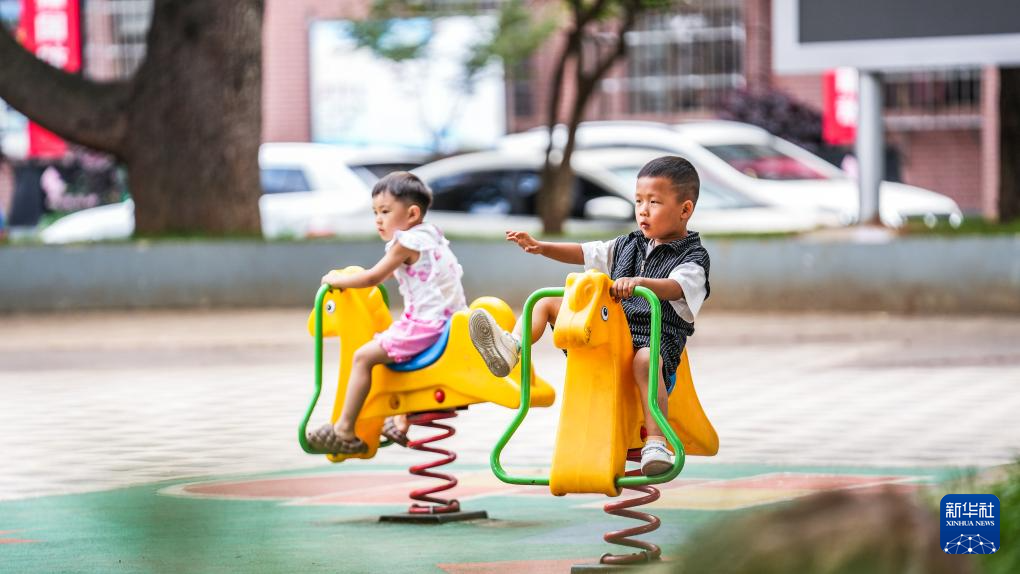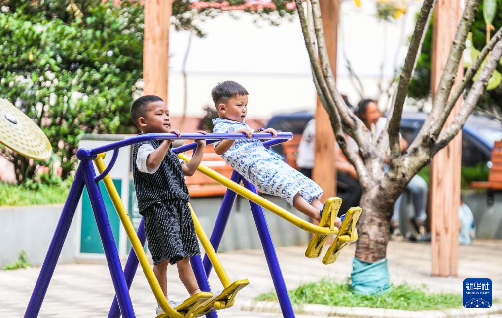 小朋友在六盘水市钟山区黄土坡街道文明巷小区中心广场玩耍(8月17日摄)。新华社记者 陶亮 摄