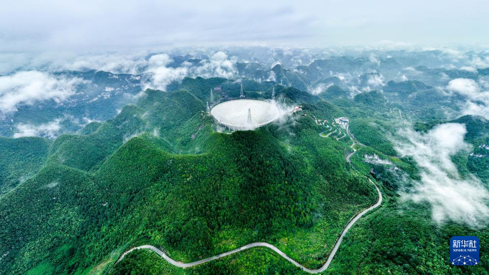 这是6月22日拍摄的“中国天眼”全景(无人机照片,维护保养期间拍摄)。新华社记者 欧东衢 摄