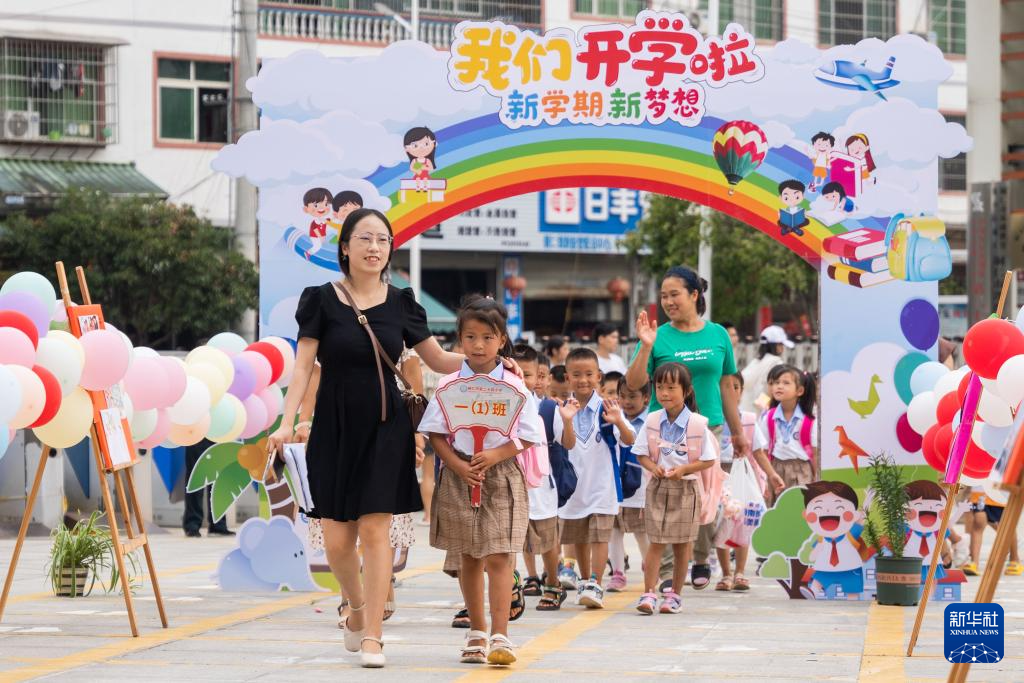 8月21日,贵州省黔西市惠风学校的一年级新生进入校园。新华社发(范晖 摄)