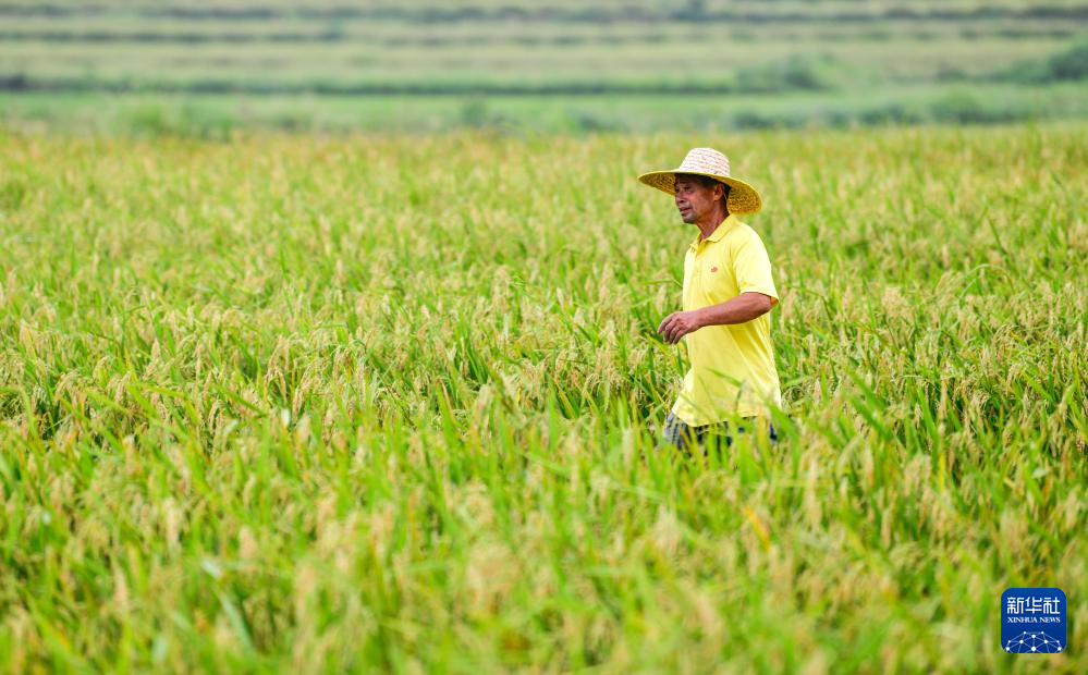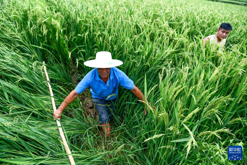 陈良东在杂交水稻制种基地查看稻种成熟情况(8月26日摄)。新华社记者 杨文斌 摄