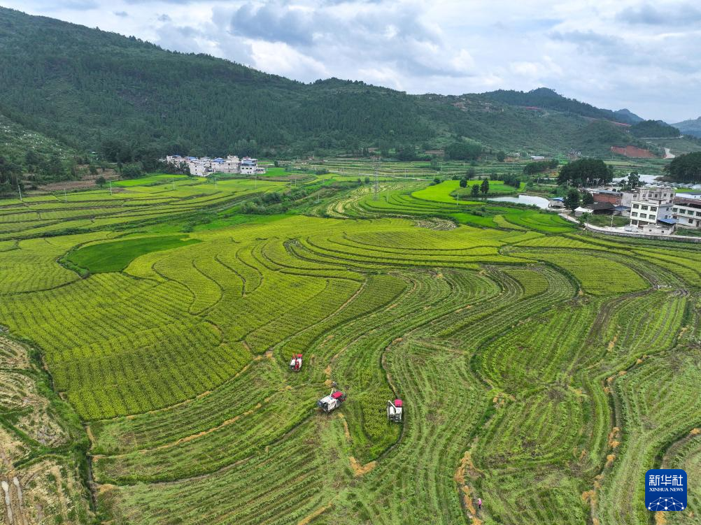 近年来,随着农业机械化向偏远山区推广,老陈春天犁田用上了大型耕田机,夏季防虫用上了无人机,秋天请来专业收割机队帮忙收割,大大节约了时间成本,提高了生产效率。