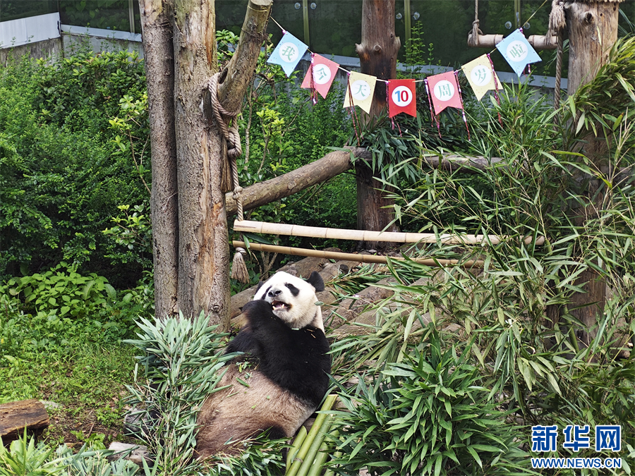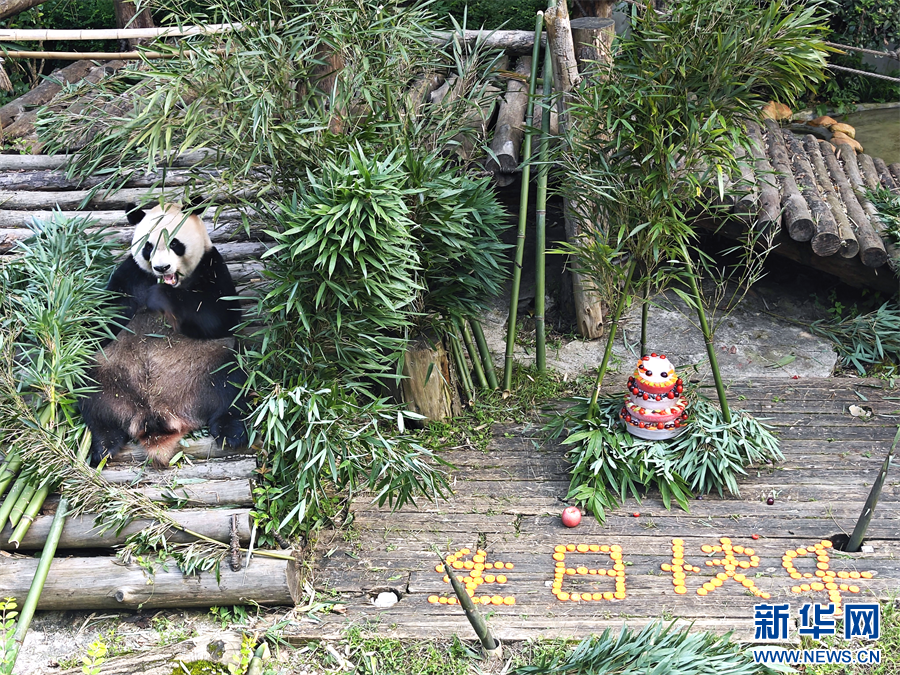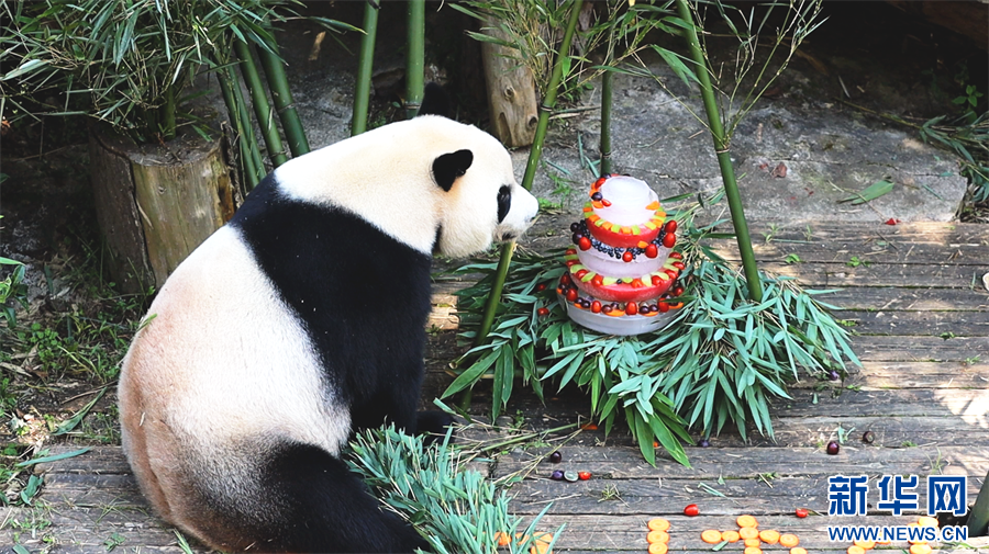 8月30日,大熊猫“星宝”享受着它的生日惊喜。新华网发(韦振东 摄)