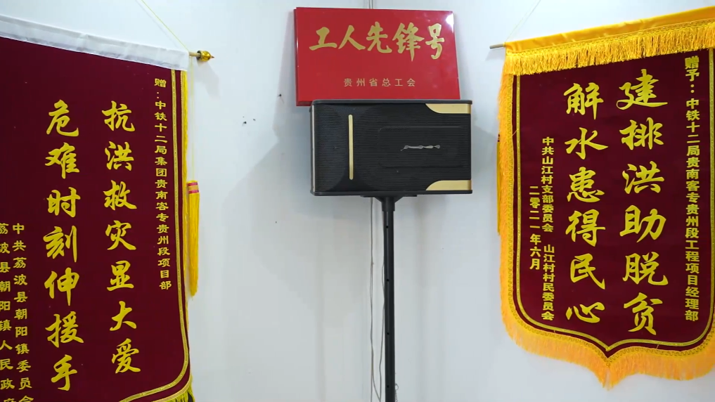 在中铁十二局四公司贵南客专项目部的墙壁上,挂着几面锦旗,有扶贫的、有抢险的、有助学的。