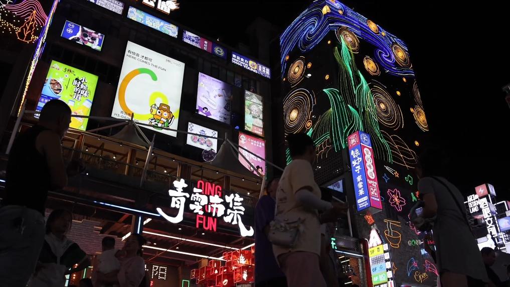 餐饮、娱乐、文创三种业态交织融合,7月以来,每天约有3万人次在这里感受灯光璀璨的都市夜晚,体验贵阳本地夜生活。