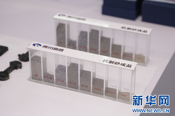 9月1日,贵州高速集团展厅内展示的“贵州造”机制砂。新华网 卢志佳 摄