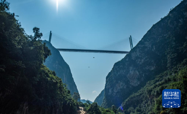 9月7日,运动员从北盘江大桥上起跳翱翔。新华社记者 陶亮 摄