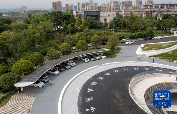 2022年6月16日拍摄的已建成投用的重庆首座光伏充电发用一体充电站(无人机照片)。新华社记者 刘潺 摄