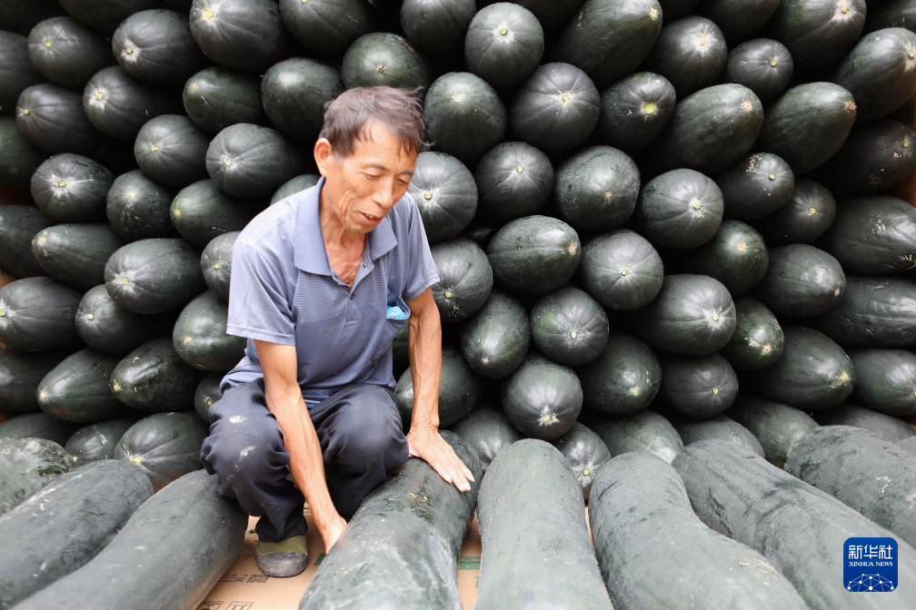 9月13日,村民在贵州省黔东南苗族侗族自治州施秉县城关镇白塘村将收获的冬瓜装车,准备供应市场。新华社发(邰胜智 摄)