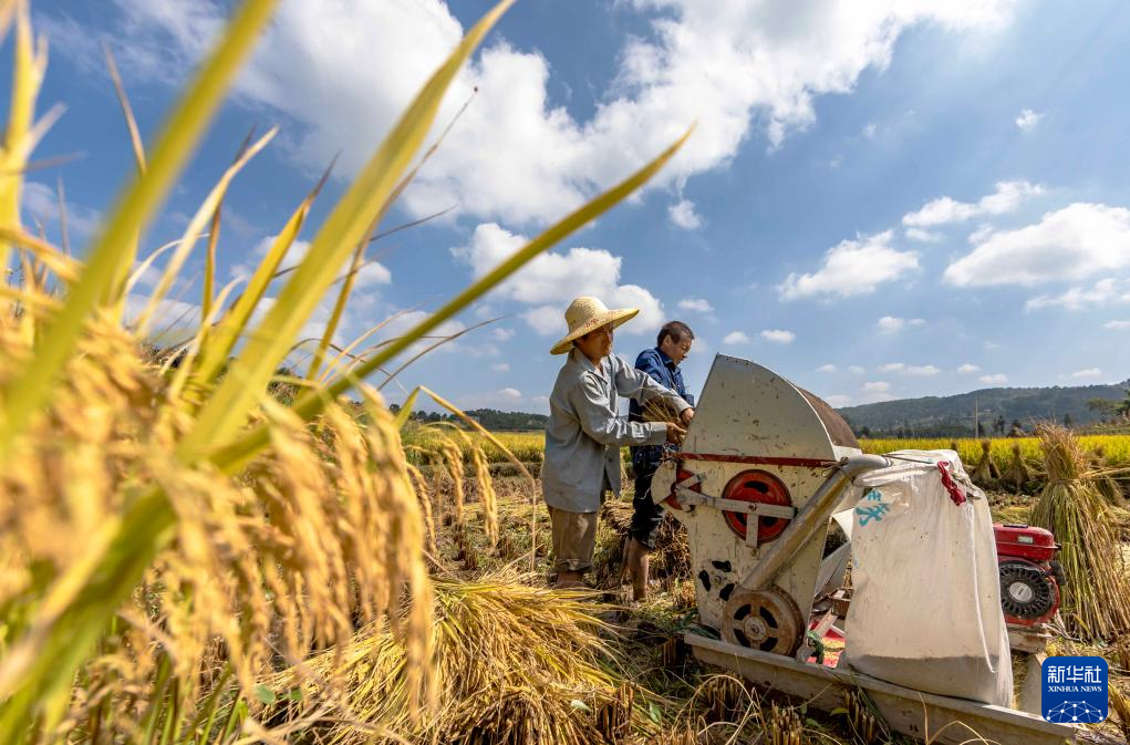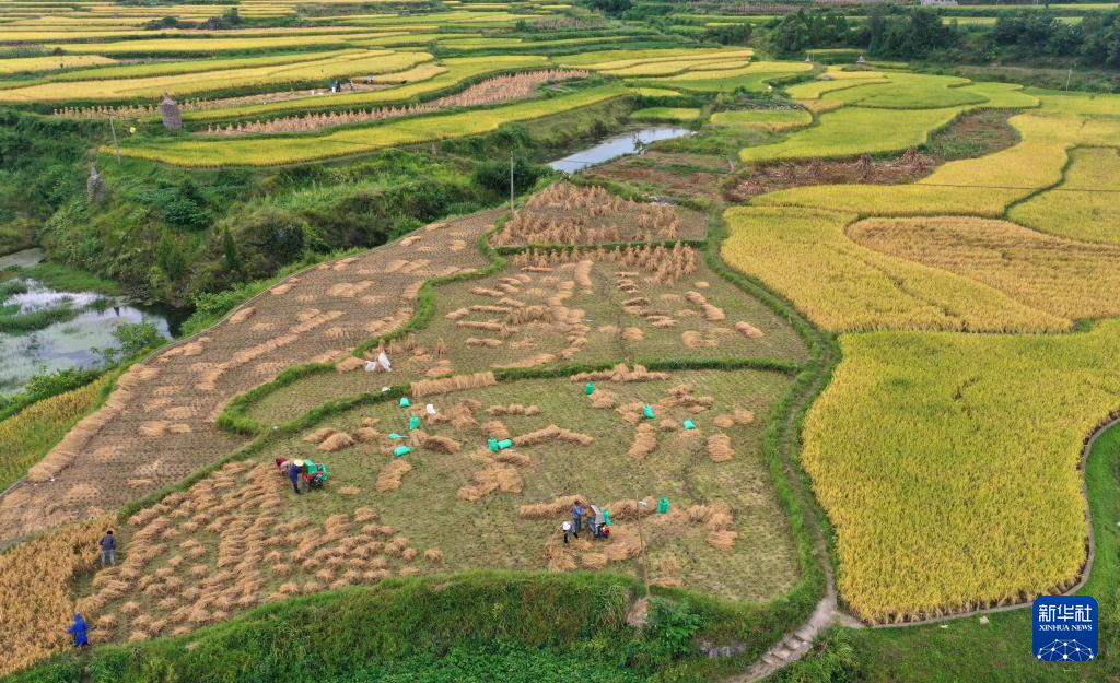 金秋时节,各地农民抢抓晴好天气忙收获,田间地头一派繁忙景象。