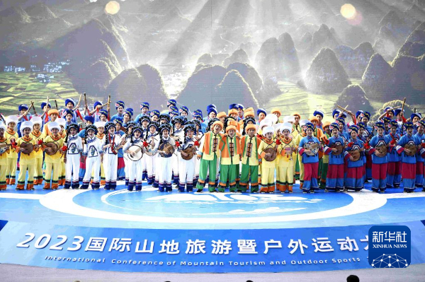 9月16日,演员在2023国际山地旅游暨户外运动大会开幕式上表演。新华社记者 杨文斌 摄