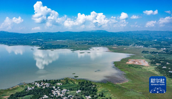 夏日的草海蓝天、白云交相辉映,构成了一幅幅美丽的夏日画卷。新华社记者陶亮 摄