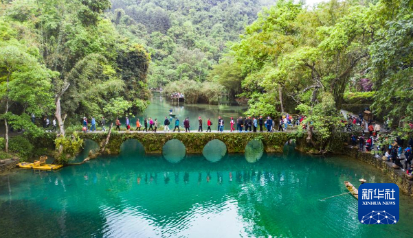 游客在荔波小七孔景区游玩。新华社记者陶亮 摄