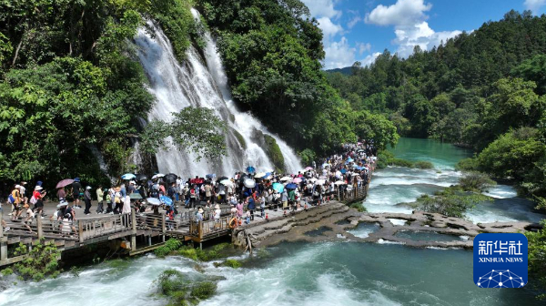 游客在黄果树大瀑布参观游览。新华社记者陶亮 摄
