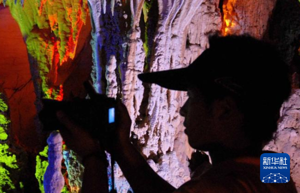 一名游客在夜郎洞观赏景观。新华社发(乔启明 摄)