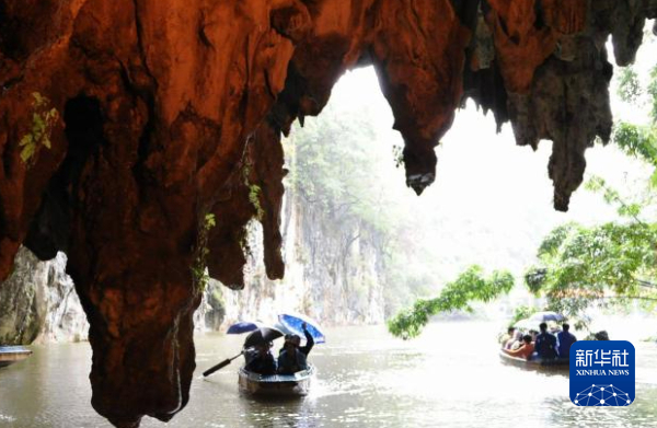 游客乘船在龙宫游览。新华社记者 刘续 摄