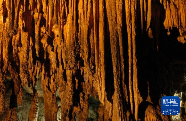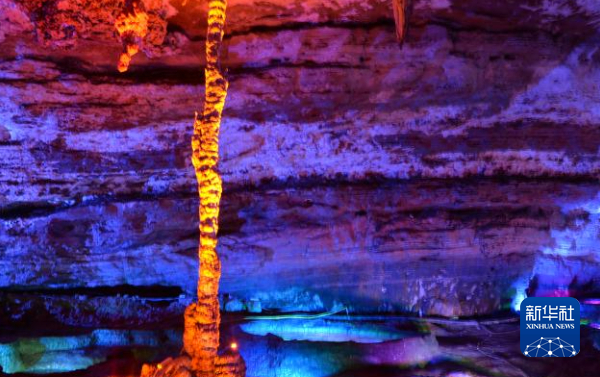 夜郎洞的钟乳石和石笋景观。新华社发(乔启明 摄)