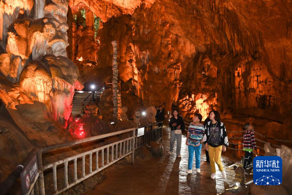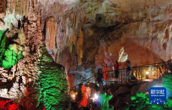 游客在毕节市织金洞景区游览。新华社发(邓刚 摄)