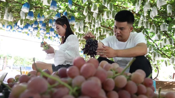 在河北省卢龙县蛤泊镇鲍子沟村,贾志彬和杨丽娜夫妻俩的23亩葡萄种植园硕果累累。连日来,这对“90后”新农人订单不断,今年有望拿下约4万斤的好收成。这个“甜蜜收获季”,让他们更加坚定了扎根乡村的信心。