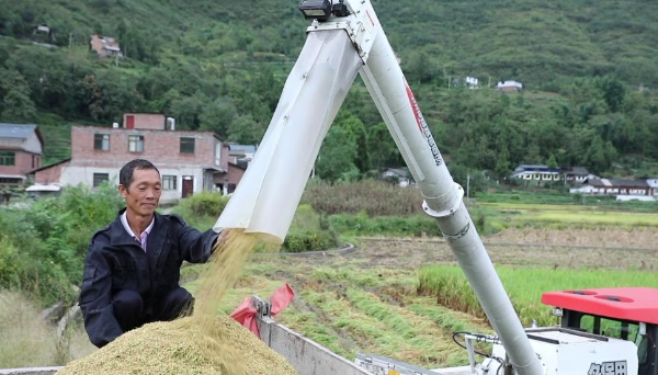 在贵州省桐梓县狮溪镇的高标准农田里,一片片金黄的稻谷与连绵起伏的远山近水、错落有致的美丽村庄、纵横交错的田间小道相映成趣。伴随着“轰隆隆”的轰鸣声,当地农户驾驶着收割机穿梭田间,将一串串饱满的稻穗收入“囊中”。