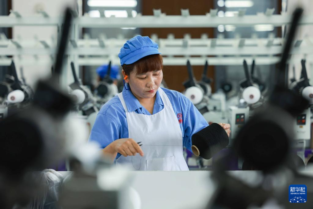 10月7日,工人在贵州省黔东南苗族侗族自治州三穗县一家运动服饰企业纺织车间工作。新华社发(龙兴伟 摄)