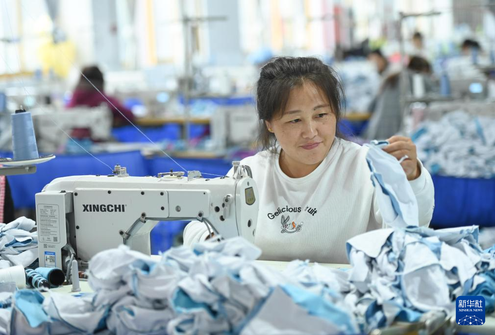 10月7日,贵州省铜仁市玉屏侗族自治县一家服装生产企业的工人在生产服装。新华社发(胡攀学 摄)
