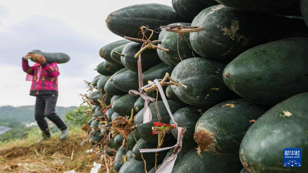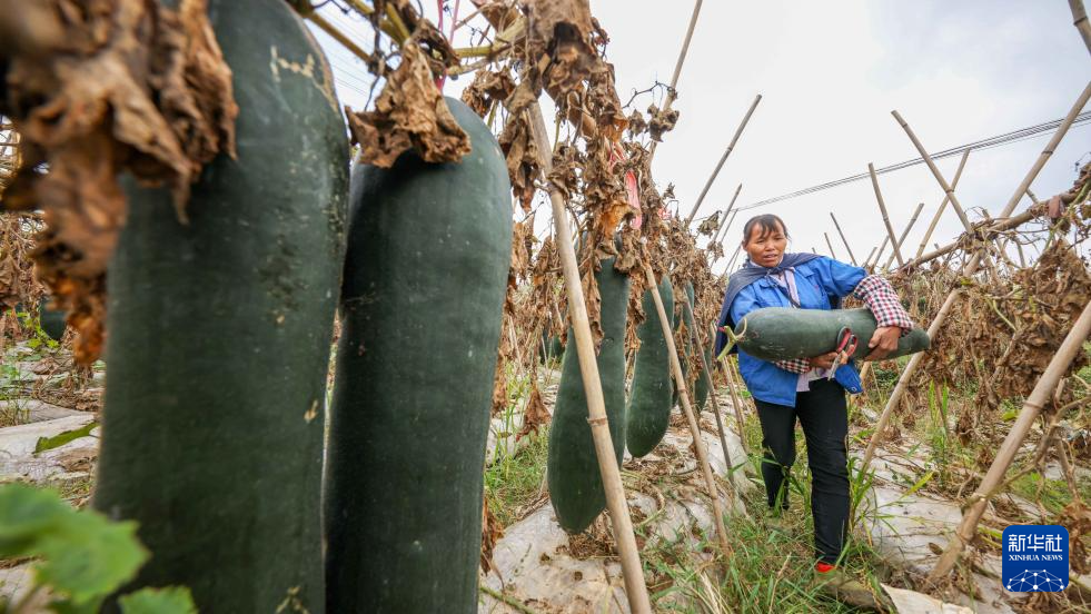 10月8日,农民在玉屏侗族自治县田坪镇长岭村采收冬瓜。新华社发(胡攀学 摄)