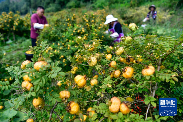 9月1日,村民在贵州省龙里县谷脚镇茶香村采摘刺梨。新华社记者 杨文斌 摄