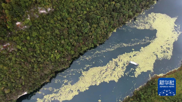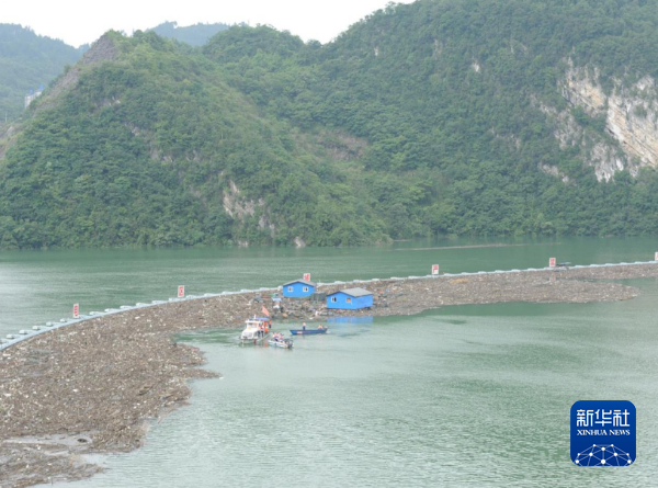 如今的构皮滩水电站库区拦污浮排。(新华社记者刘硕 摄)