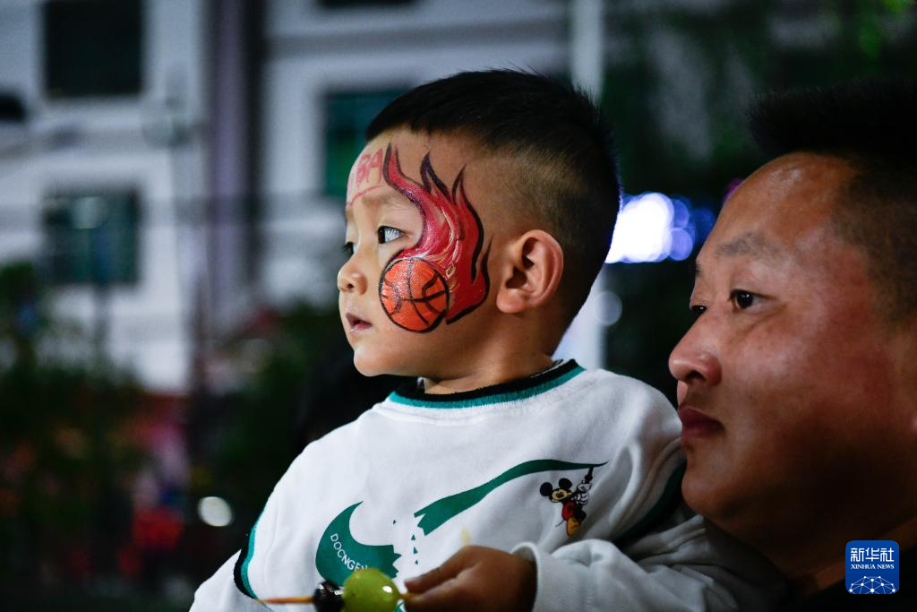 10月28日,一名小朋友与家人在观看比赛。新华社记者 杨文斌 摄