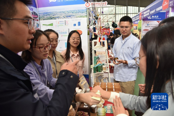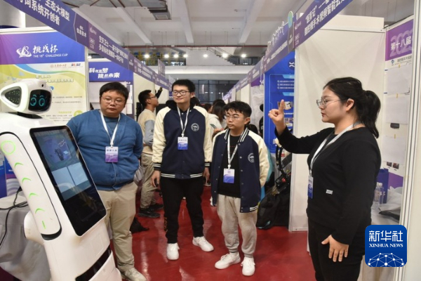 在贵州大学举办的第十八届“挑战杯”全国大学生课外学术科技作品竞赛吸引全国2000多所高校、40余万件作品、250多万名学生参赛(10月27日摄)。新华社记者 骆飞 摄