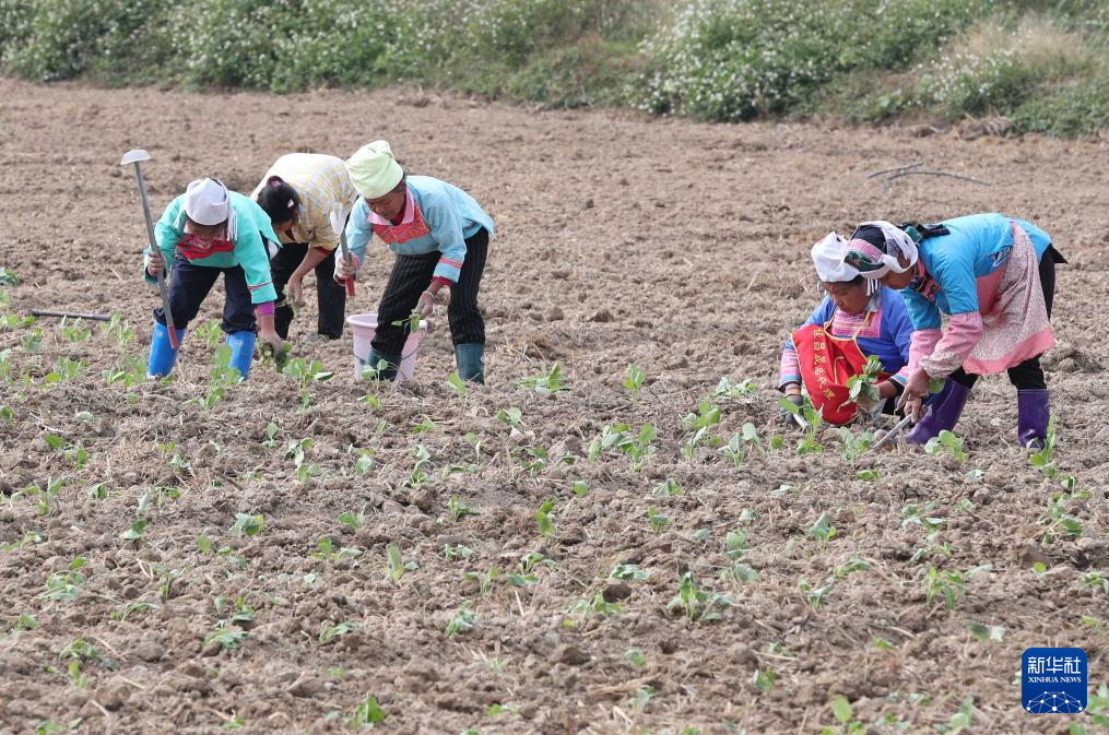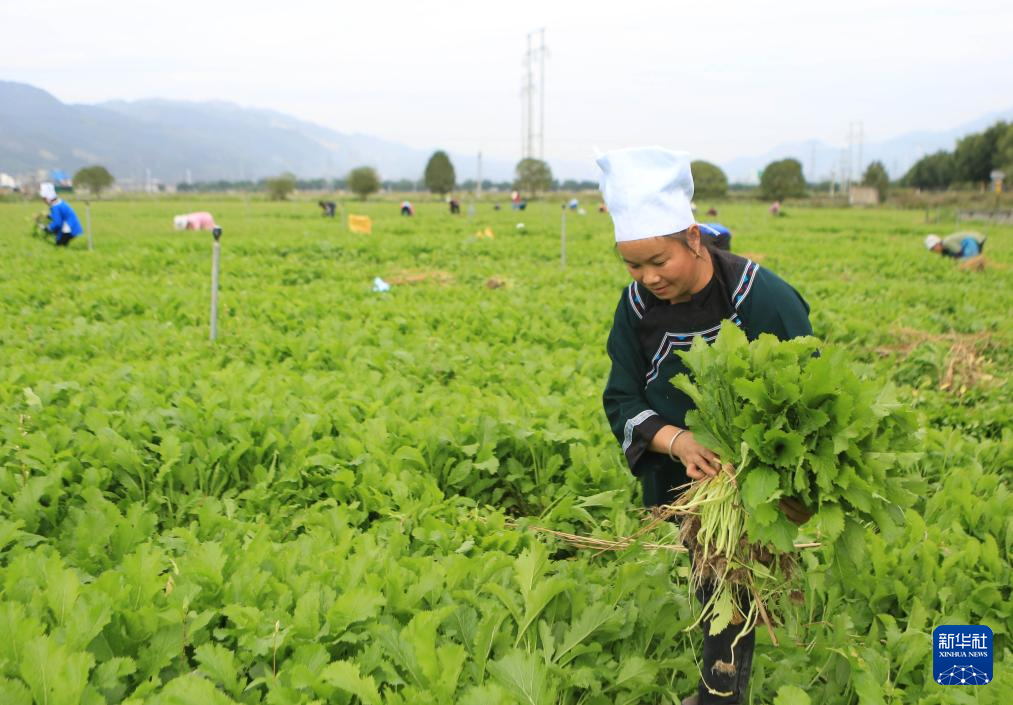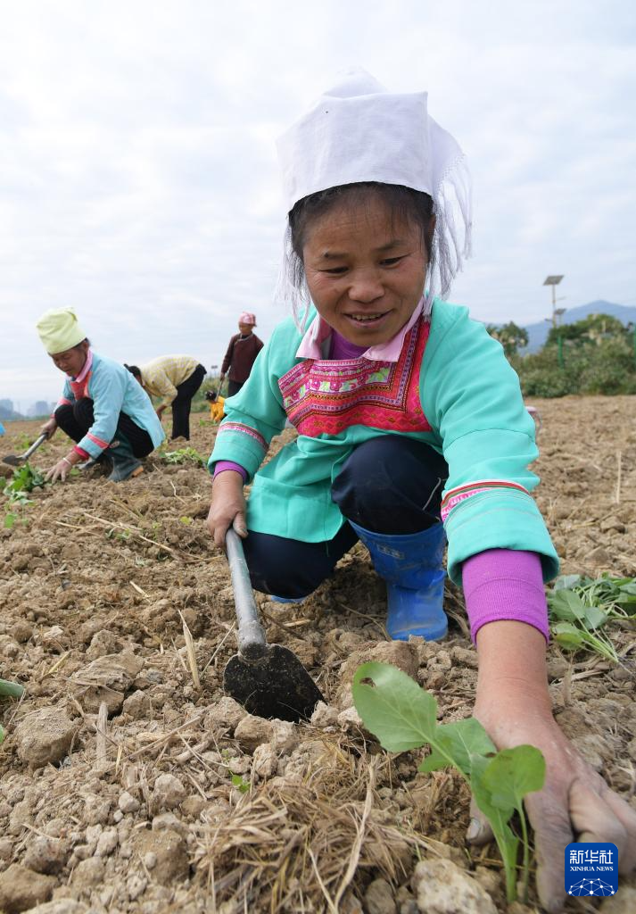 初冬时节,贵州省黔东南苗族侗族自治州榕江县的村民抢抓农时,开展整地、起苗、移栽油菜、收割蔬菜等农事活动,田间地头一派繁忙景象。
