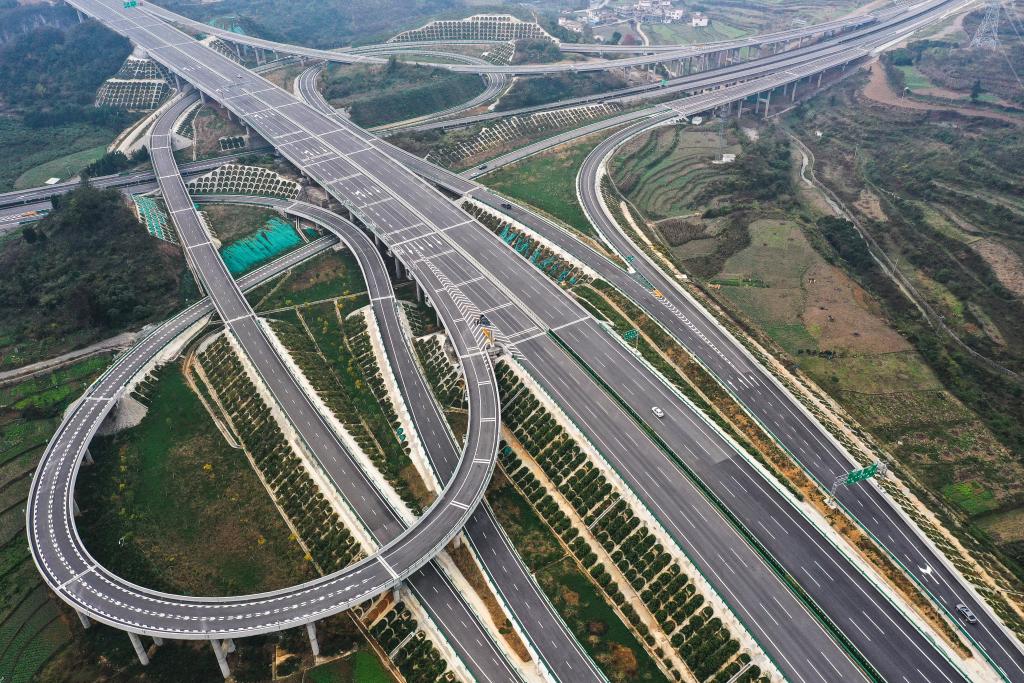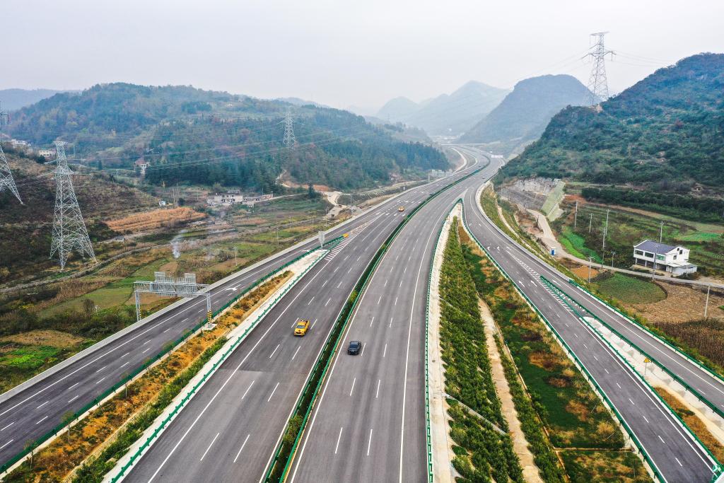 11月24日,车辆在贵金高速公路郝官枢纽上行驶。