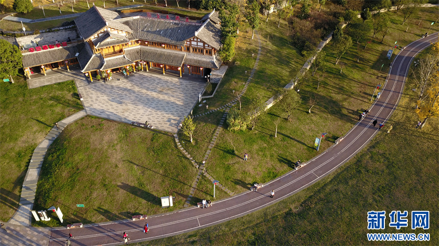 11月28日,游客在贵阳市泉湖公园游玩(无人机照片)。新华网 黄勇 摄