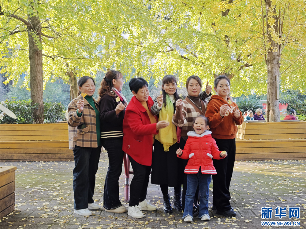 12月4日,在赤水市金华街道滨东社区银杏广场,大家静享美好时光。新华网发(张浪摄)