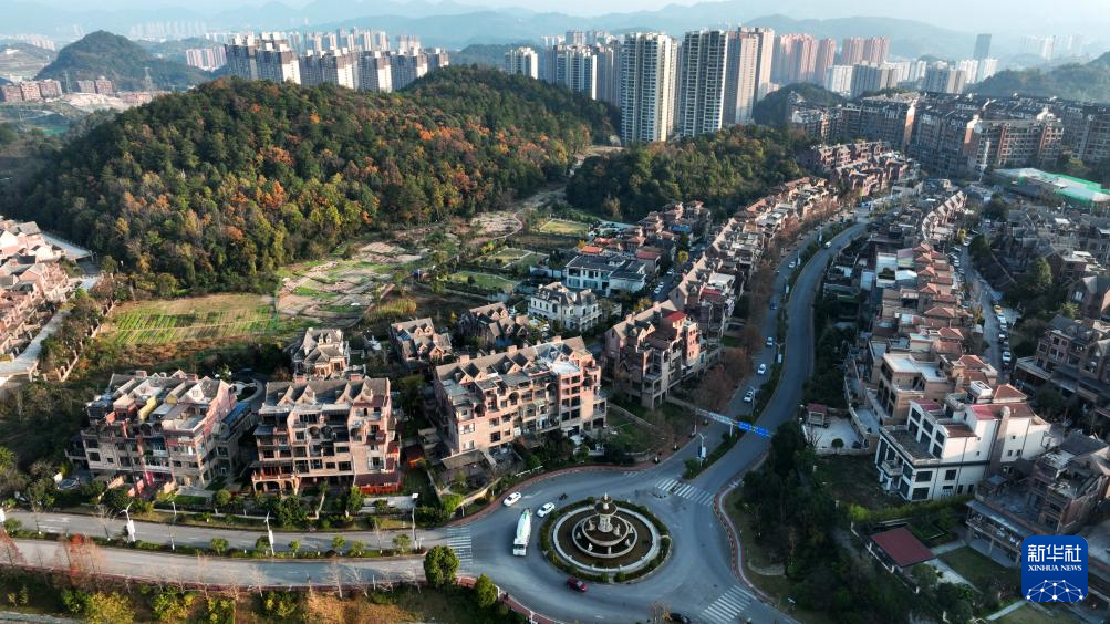 12月11日拍摄的贵阳市乌当区新光路街道一景(无人机照片)。新华社记者 杨楹 摄